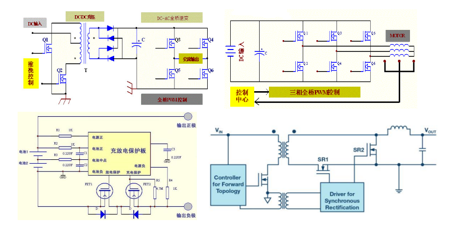 (1)儲能電源/太陽能控制器/逆變器/UPS等電源的DC-DC升壓結構使用推免結構或者半橋、全橋結構。