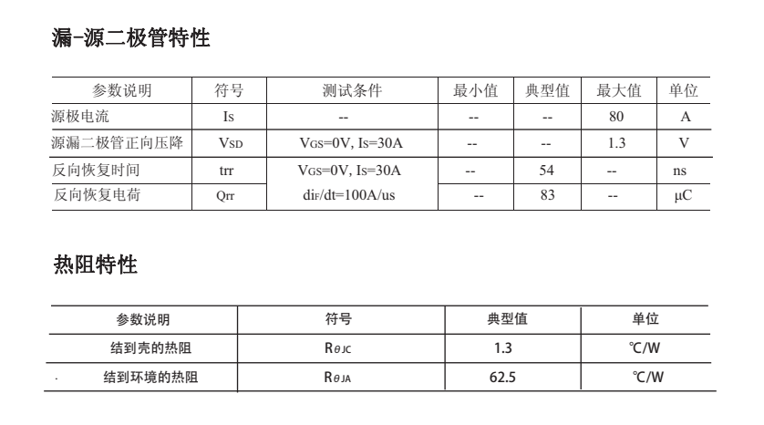 最大脈沖漏極電流(IDM ):480(A);靜態(tài)導通電阻(typ):VGS=10V則為2.95mΩ;反向傳輸電容:97pF。