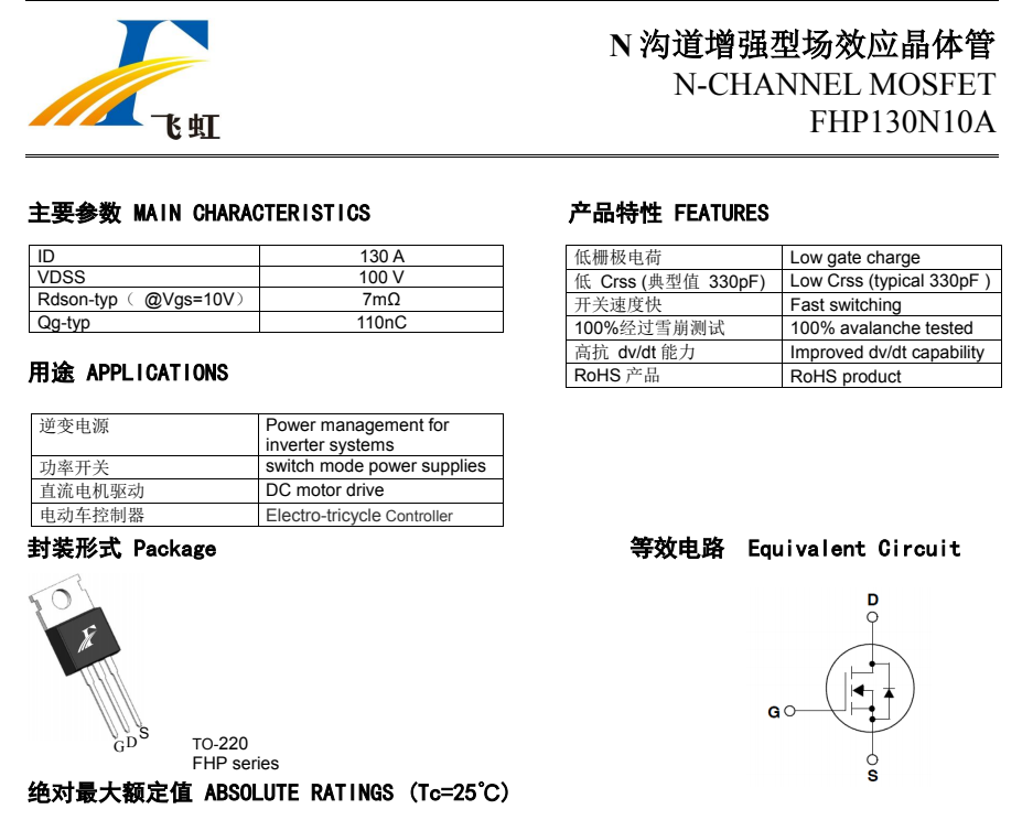 (1)FHP130N10A具體參數(shù)為: